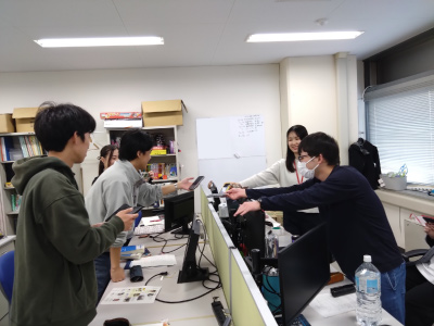 2025年2月15日 明日の修論発表を控え、最後の発表練習です。後輩くんたちも、たくさんのアドバイスをしてくれました。
