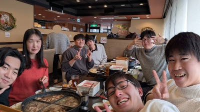 2025年2月24日 4年生の卒研終了、M1の就活終了、M2の修論終了、ということで、お祝いをしました。しゃぶしゃぶ食べ放題のランチ