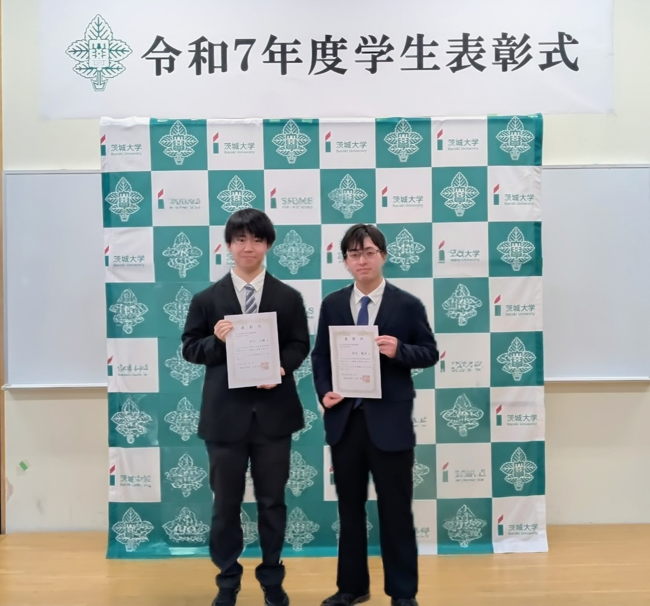 2026年3月4日 M1の鈴木くん、伊川くんが、茨城大学学長より学生表彰をうけました。中性子科学会での最優秀、優秀発表賞を評価されました。