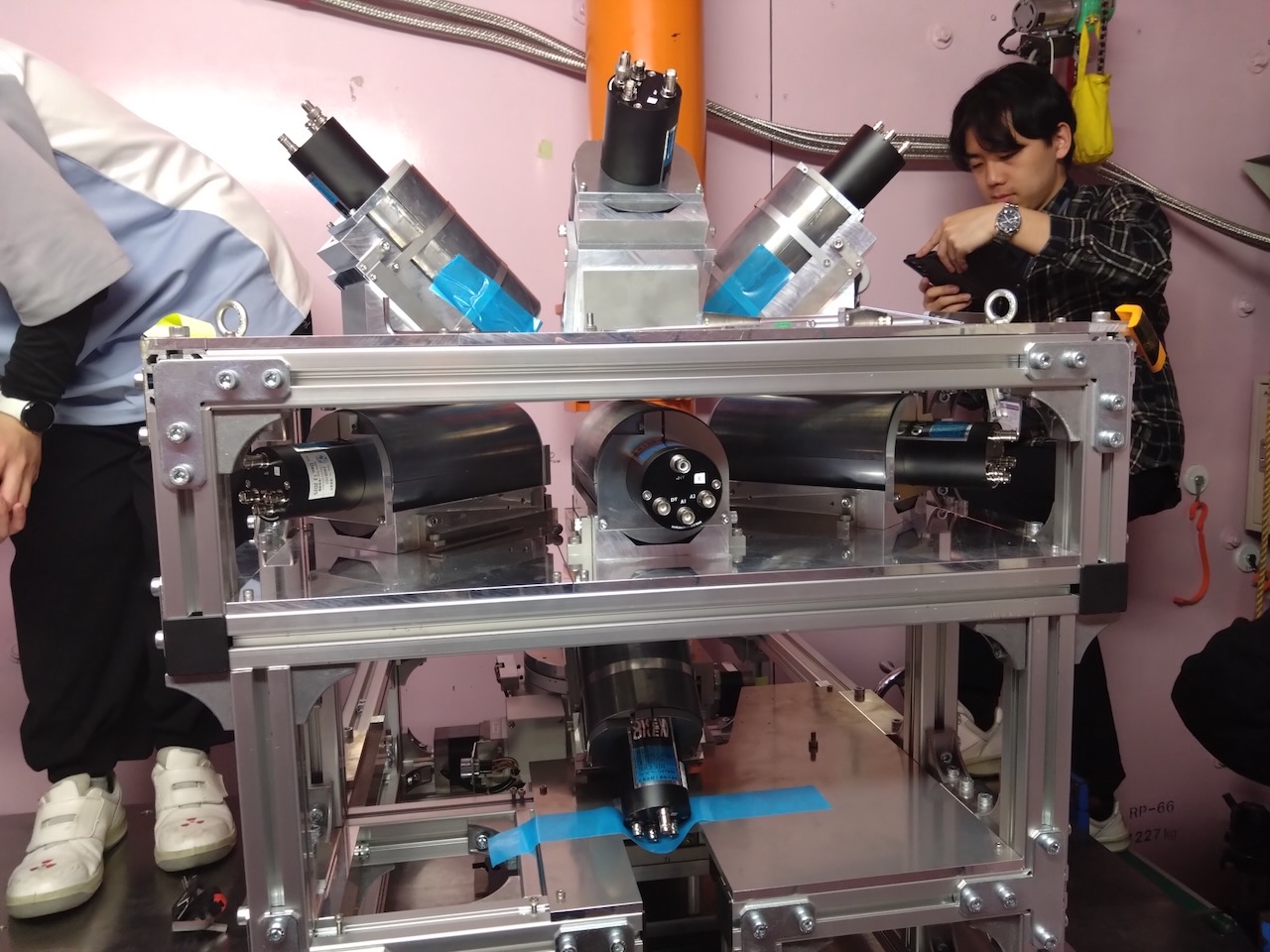 2025年4月14日 院生4人でJ-PARCにいき、実験に用いる装置(ゴニオメーター)の組み立て試験をおこないました。無事正しい位置に組み立てることができて、問題なく実験ができそうです。