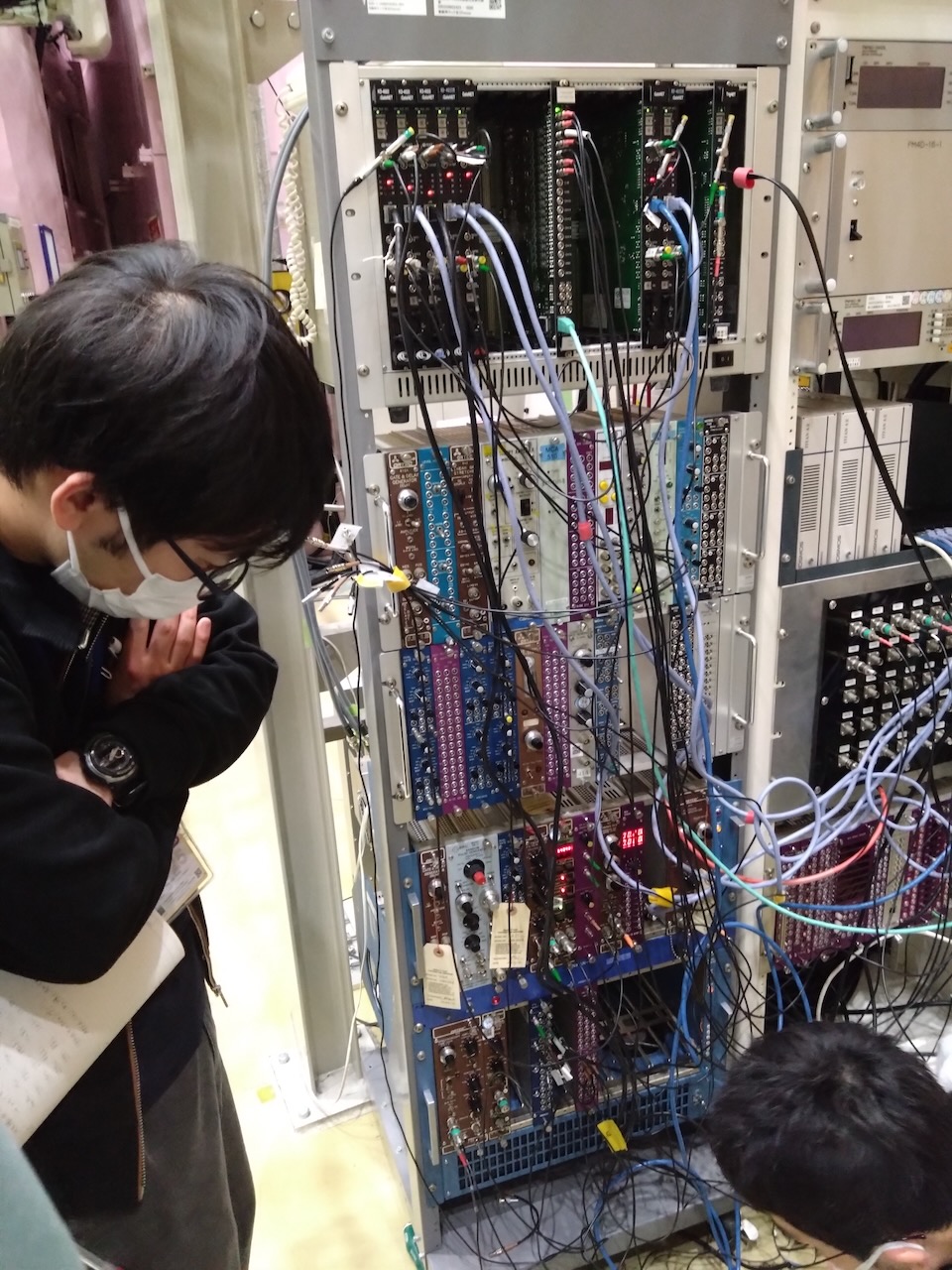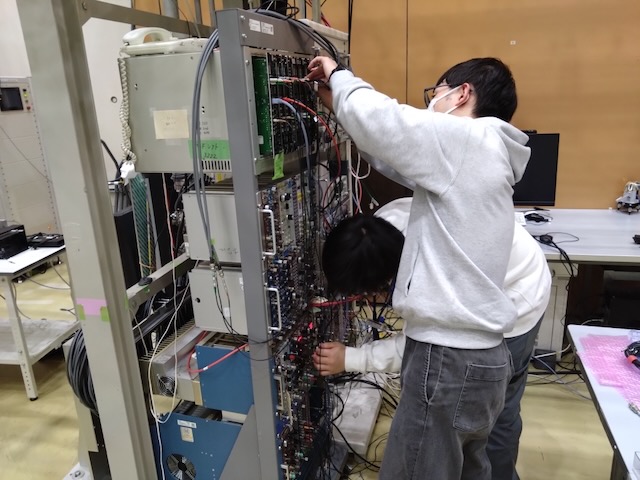 2024年10月3日 秋冬のJ-PARC実験の準備として、J-PARCで新しい検出器の測定試験を行いました。J-PARCセンターの土川先生、原田先生と共に、主に4年生の3人が中心となって進めました。