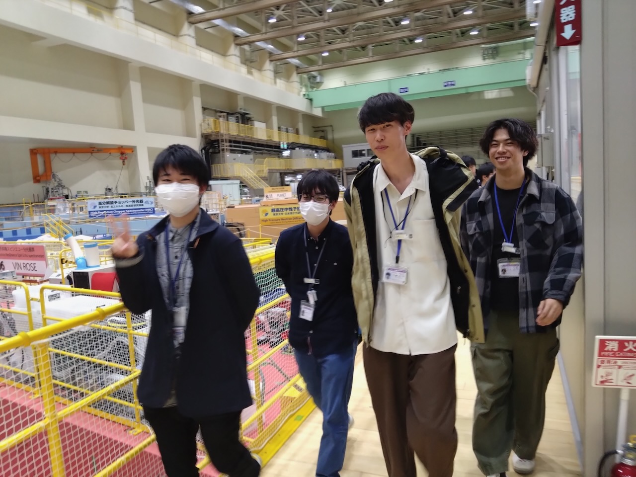 2024年9月10日 物質科学工学科の3年生3人がJ-PARC見学+研究室訪問にきてくれました。J-PARCの中性子実験室を見学し、実際の装置を間近でにみてもらいました。また先輩たちに、研究室ってどんなところか、卒研の何がたのしいか、話してもらいました。