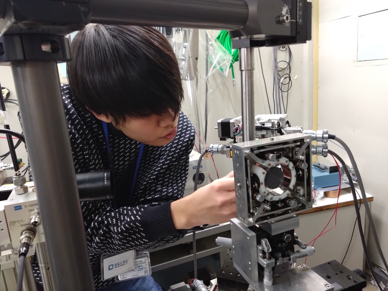 2025年5月13日 放射光実験の準備で、4年生の伊藤くんと須賀野くんが、(CeLa)B6単結晶の逆格子写真をとる実験をしました。先輩の滝田くんがサポートしてくれました。